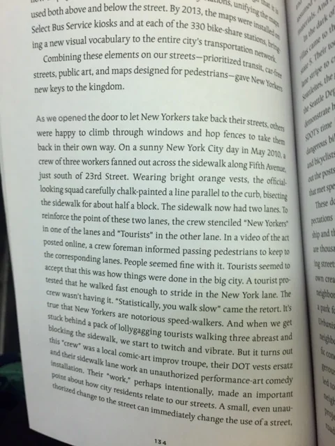 As a former commissioner of NYC's Department of Transportation, Janette Sadik-Khan made more room for pedestrians, bikers, buses, and green spaces. In her new book, Street Fight (Handbook for an Urban Revolution), she makes mention of my "Tourist Lane" project. When I chatted with her on Twitter she told me the Tourist Lane story is one of her favorites to tell. Awwww shucks. Check out Janette's book here.